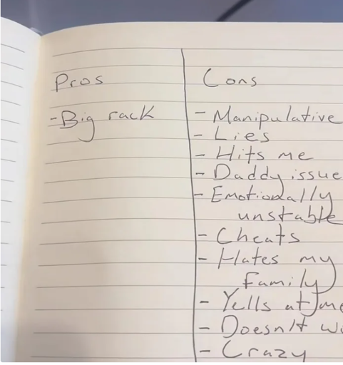 Delete “big rack” and “hits me”, move “yells at me” to the top and modify to “yells at me to go fucking kill myself” and now it’s my ex.