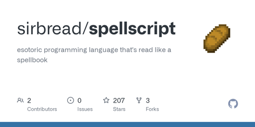 arrow-up191arrow-down1external-linkSpellscript: esotoric programming language that's read like a spellbookgithub.comcm0002@lemdro.id to Programmer Humor@programming.devEnglish · 20 days agomessage-square7linkfedilinkcross-posted to: [email protected][email protected]