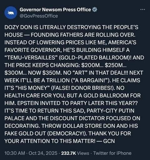 I swear people forgot less than a year ago Newsom had Charlie Kirk and Steve Bannon on his podcast to suck up to them and say they were better than Dem on LGBT issues…