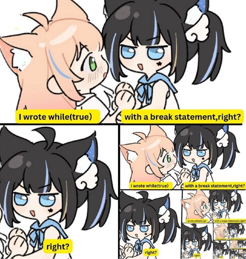 arrow-up1585arrow-down1imagewith a break statement right?piefed.cdn.blahaj.zoneio@piefed.blahaj.zone to Programmer Humor@programming.devEnglish · 5 days agomessage-square41linkfedilinkfile-text
