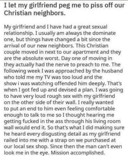 minus-squarecRazi_man@europe.publinkfedilinkarrow-up19·11 days agoOr even just leaving a porn video at loud volume. But hey, everyone’s entitled to enjoy a good pegging. You don’t need to wait to spite your neighbours to do this.