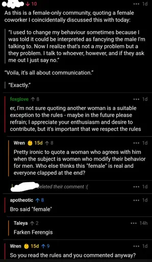 arrow-up1259arrow-down1imageDude read the rules of woman only community and decided to post anywaylemmy.dbzer0.comSchwertImStein@lemmy.dbzer0.com to Mildly Infuriating@lemmy.worldEnglish · edit-22 days agomessage-square329linkfedilink