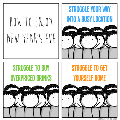 I’m so glad that my partner and I just stay in and enjoy each other’s company with some drinks. Going out on NYE is absolutely god awful.