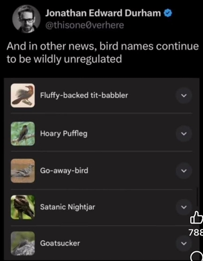 Somebody is doing something and that something is naming birds awesome names.