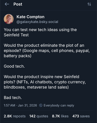 arrow-up11.08Karrow-down1imageJust ask, "Would Kramer be convinced to get into this?"lemmy.worldAutistoMephisto@lemmy.world to Microblog Memes@lemmy.worldEnglish · 3 days agomessage-square137linkfedilink