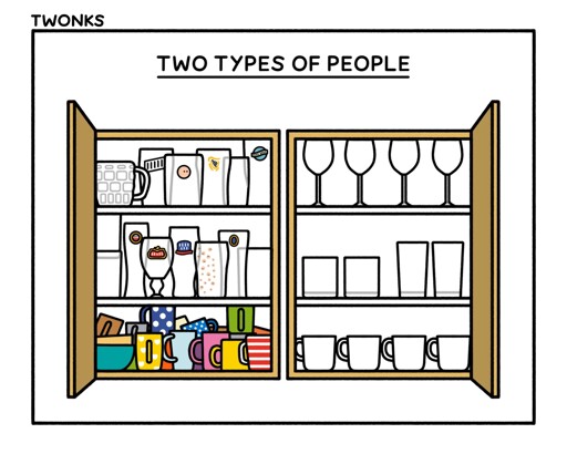 I’m definitely both but that’s because my cup wear is a random collection of cups that I acquired somehow over the years and stuff I actually went out and bought and only the bought stuff matches.