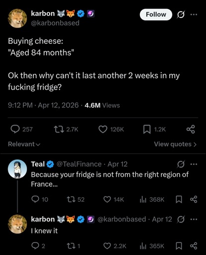 pastermil@sh.itjust.works to Microblog Memes@lemmy.worldEnglish · 9 days agoAged Like Cheesesh.itjust.worksimagemessage-square33linkfedilinkarrow-up1648arrow-down16